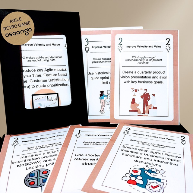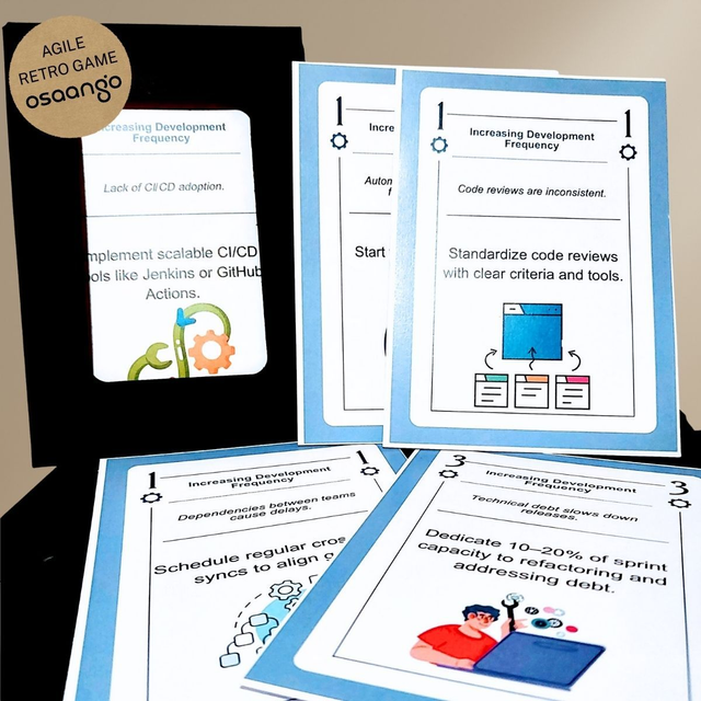 - Each pack contains 12 "challenge-solution" cards to use in team retros, skill building, or workshop sessions